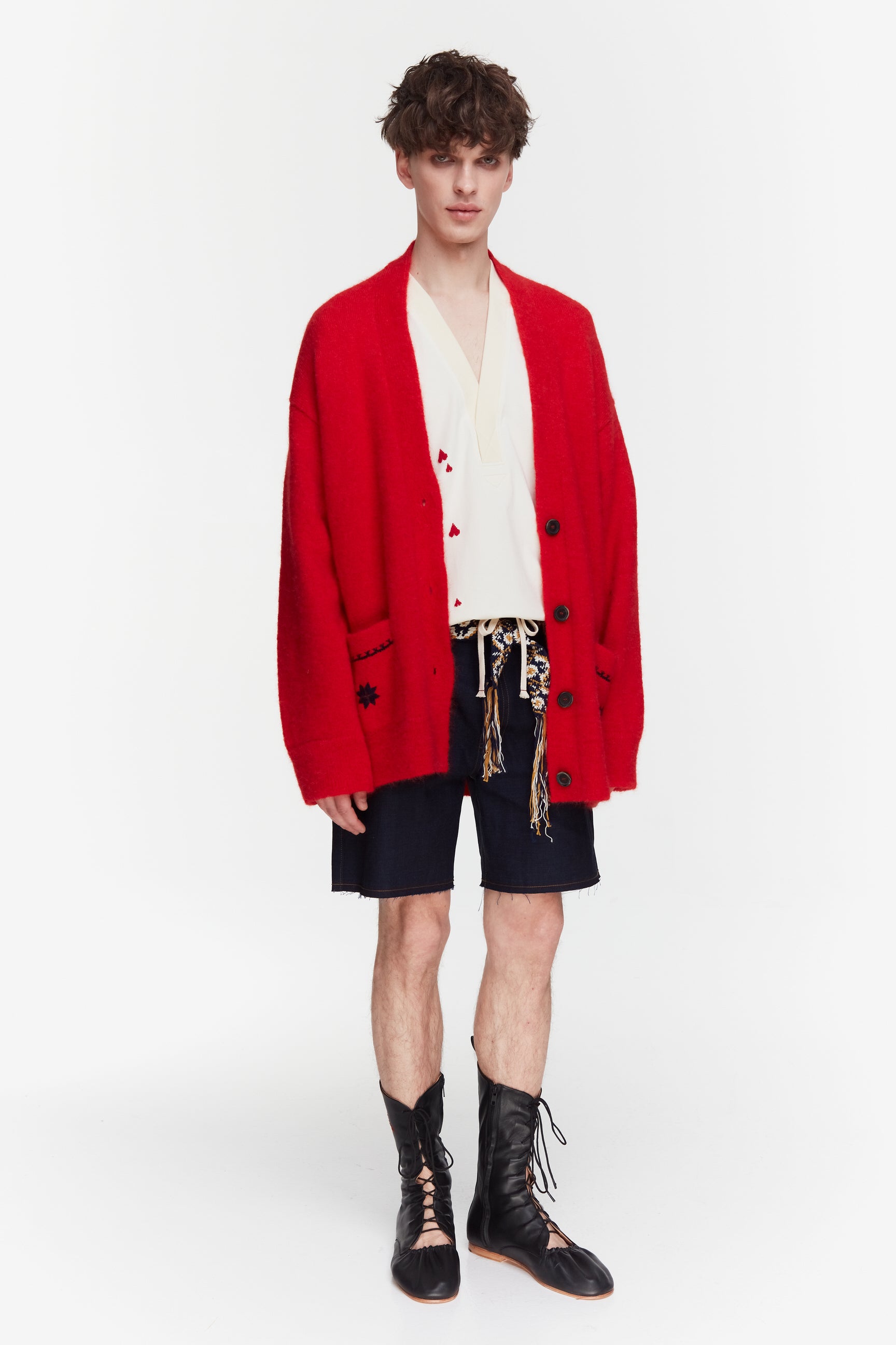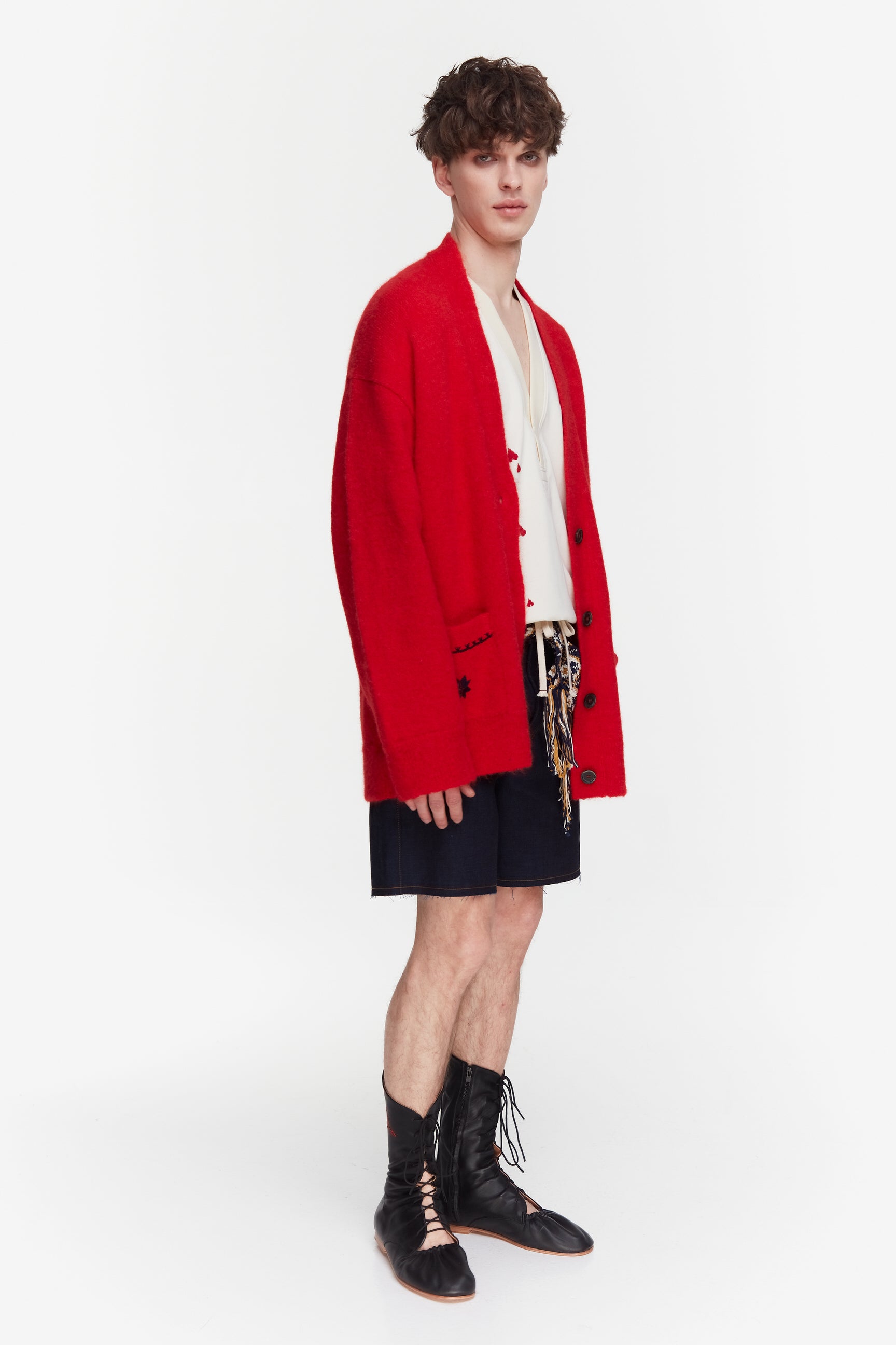 ЧЕРВОНИЙ УНІСЕКС КАРДИГАН З ВИШИВКОЮ. МИ СТВОРИЛИ ЦЕЙ СТИЛЬНИЙ ГАРДЕРОБНИЙ ЕЛЕМЕНТ З ІДЕЄЮ, ЩОБ ЙОГО МОЖНА БУЛО НОСИТИ ПІД ДЖИНСИ, ШКІРЯНІ ШТАНИ АБО НАВІТЬ ПІД СУКНЮ.