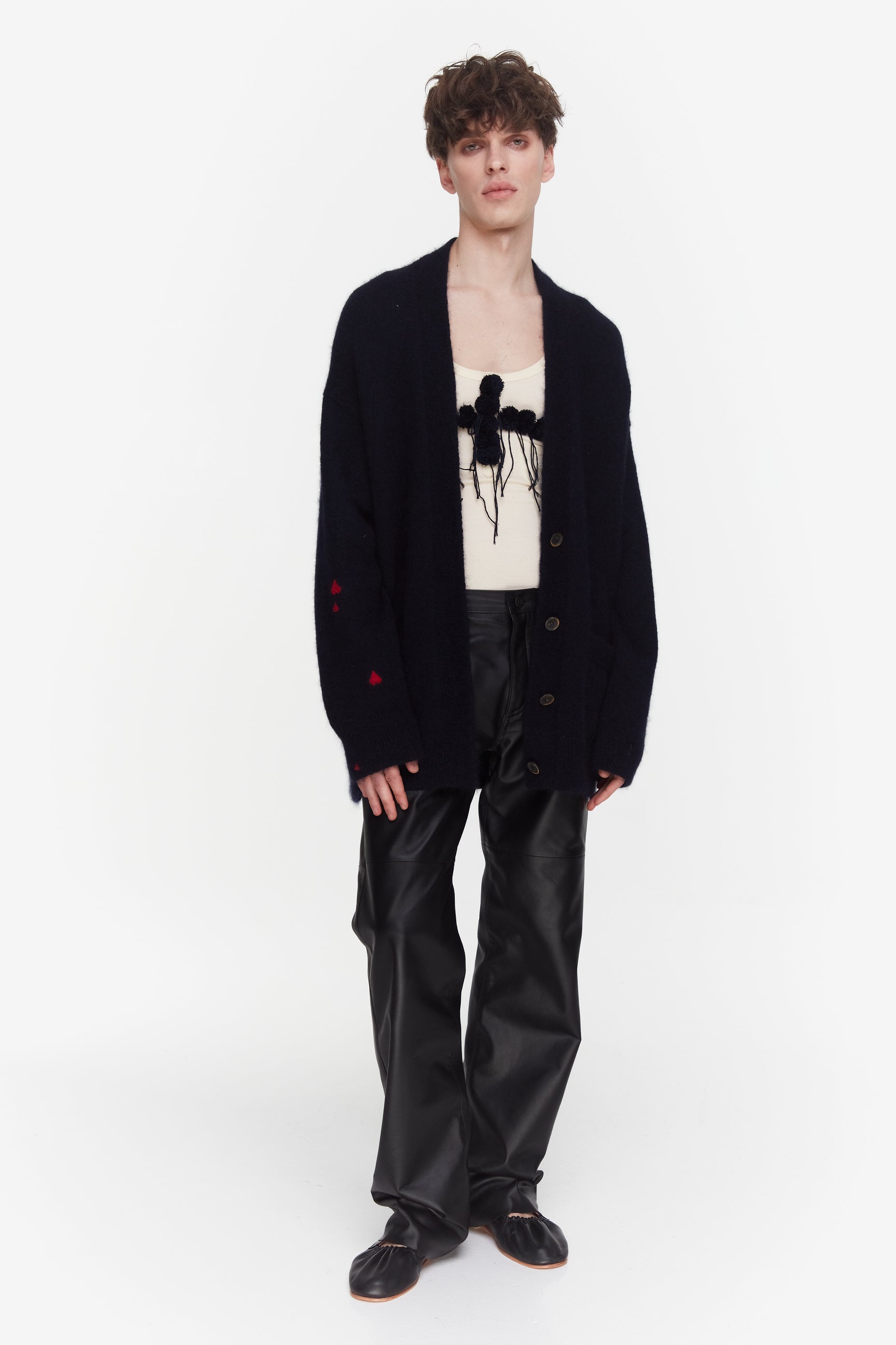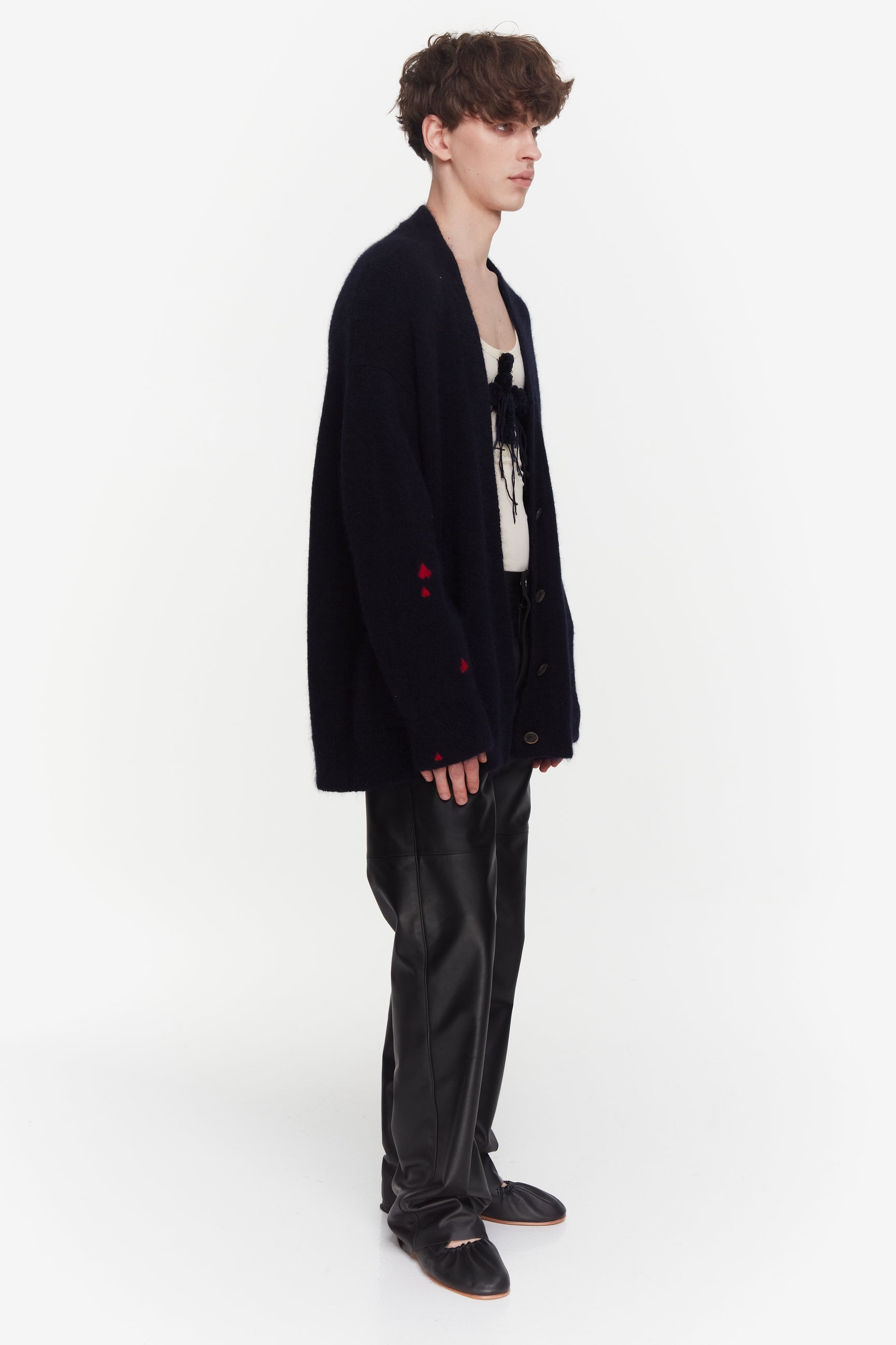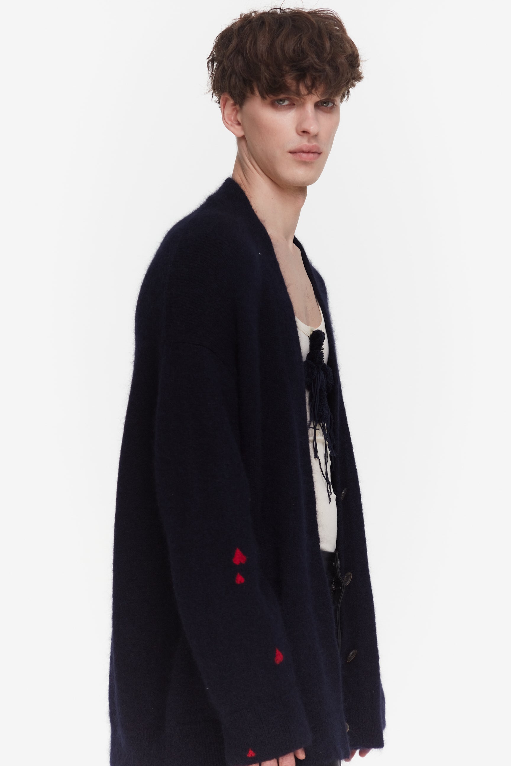 СИНІЙ УНІСЕКС КАРДИГАН З ВИШИТИМИ СЕРДЕЧКАМИ.