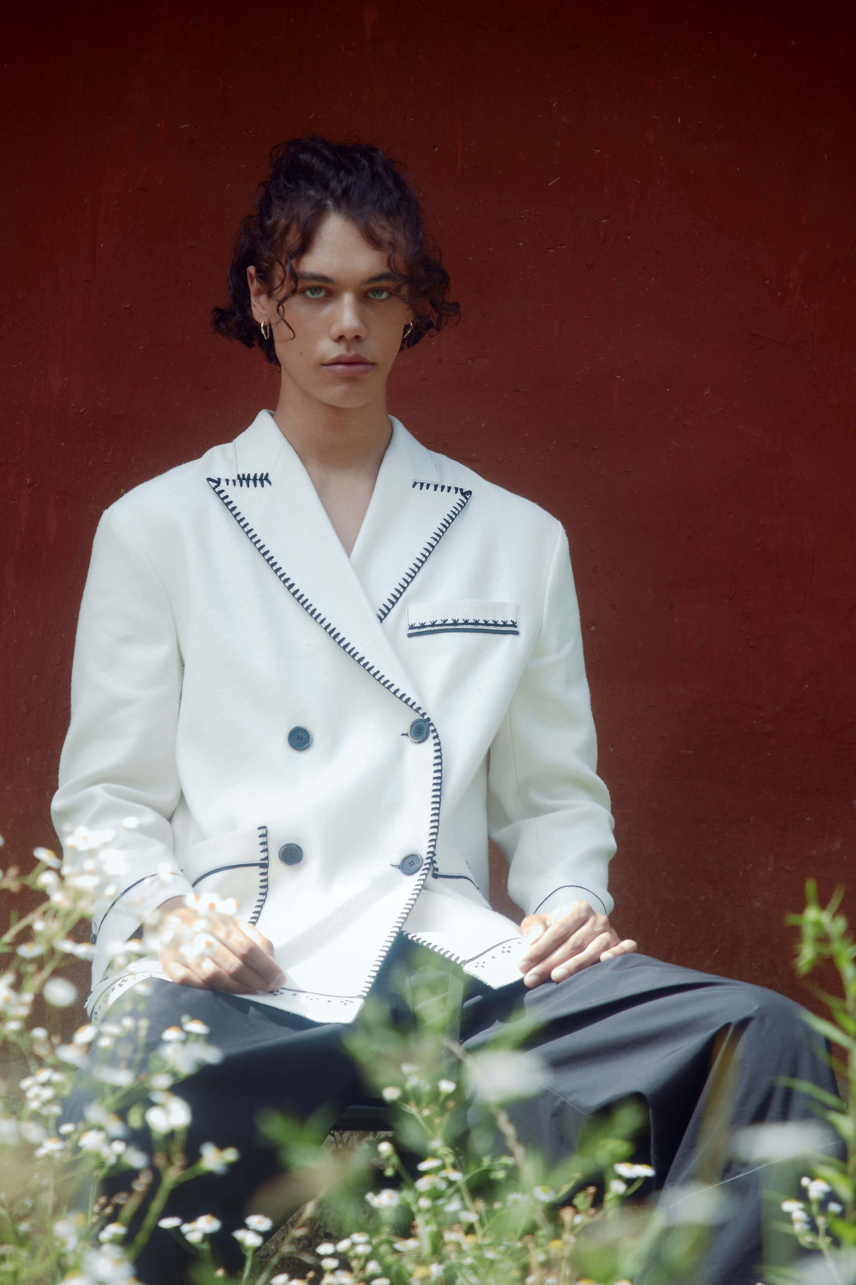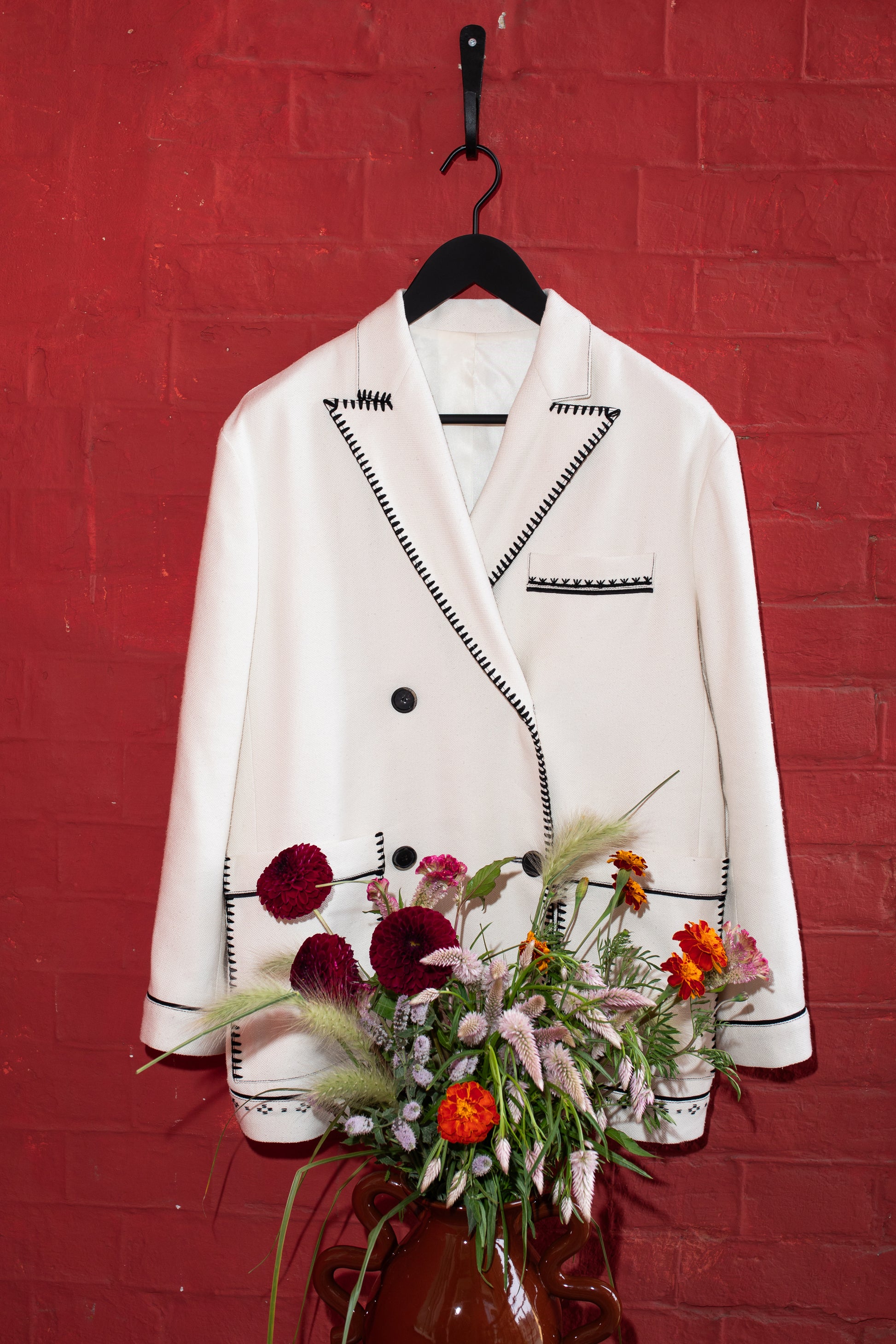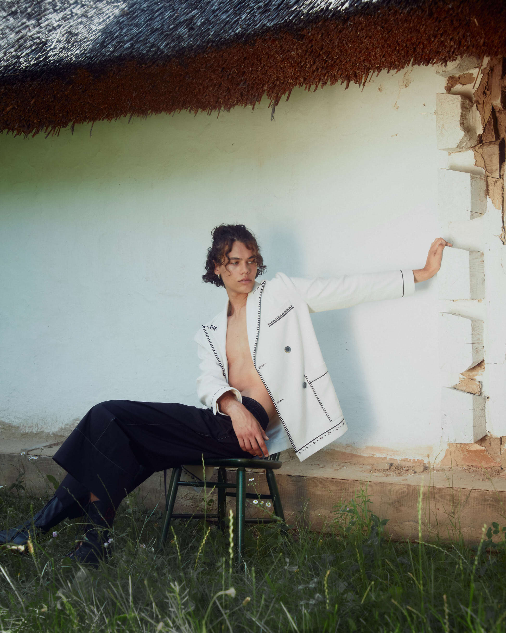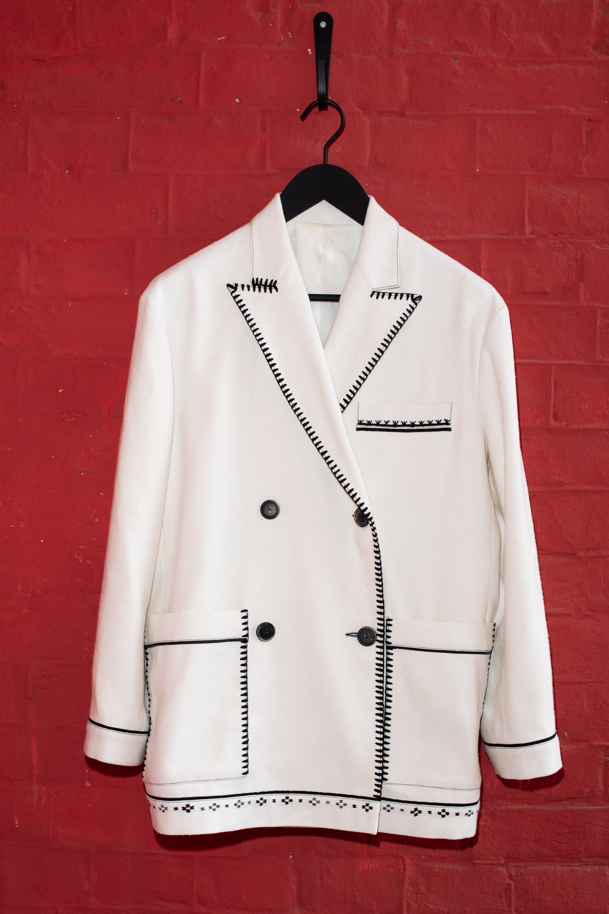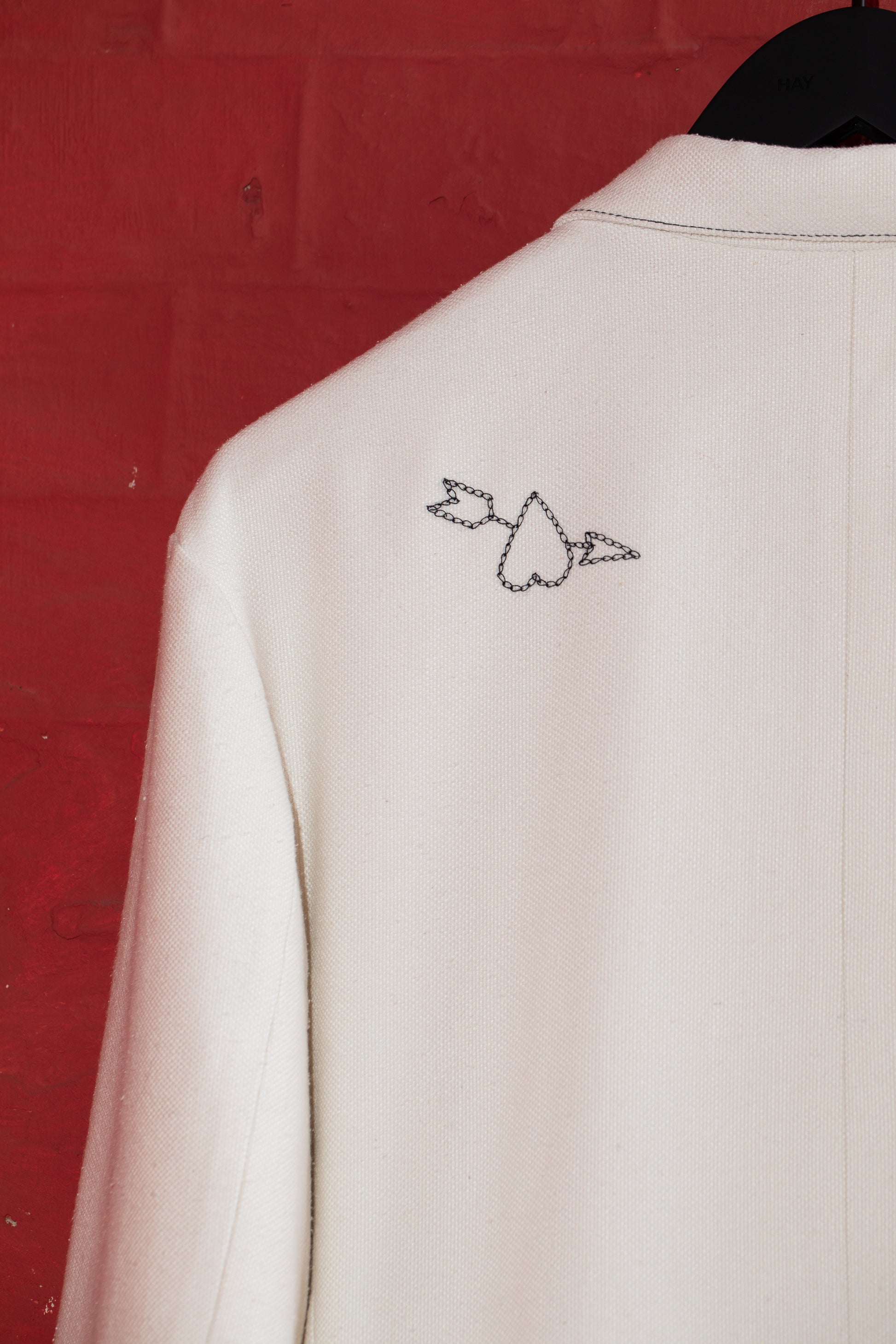 ПІДЖАК «ЛІТНИК» З БУРЕТНОГО ШОВКУ З ЧОРНОЮ ВИШИВКОЮ, В ЯКІЙ МИ СТВОРИЛИ ЕФЕКТ ПОТЕРТОСТІ – ПРИСВЯЧЕНИЙ ВІДПОЧИНКУ В КАРПАТАХ УКРАЇНСЬКОГО БОМОНДУ НА ПОЧАТКУ ХХ СТ.