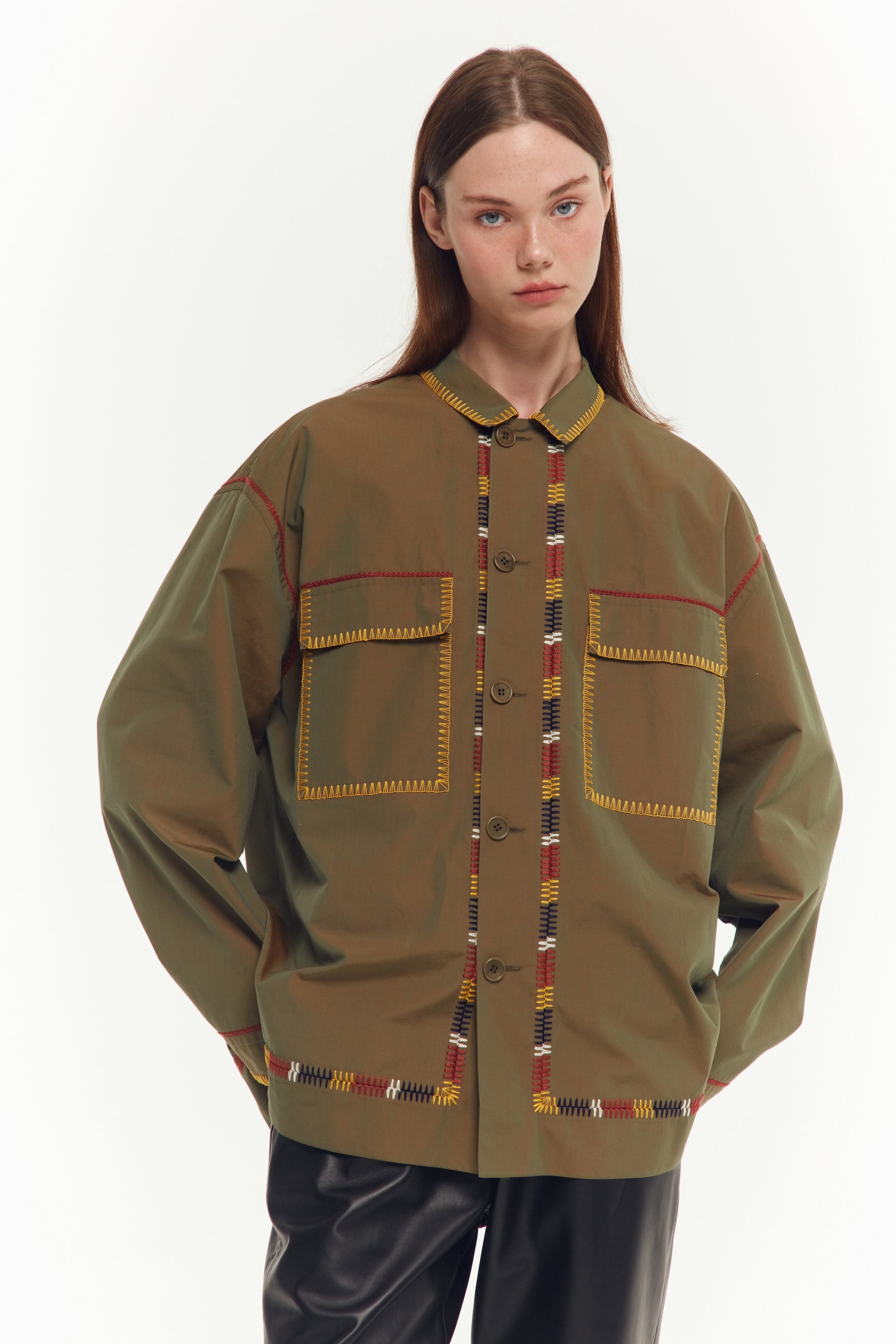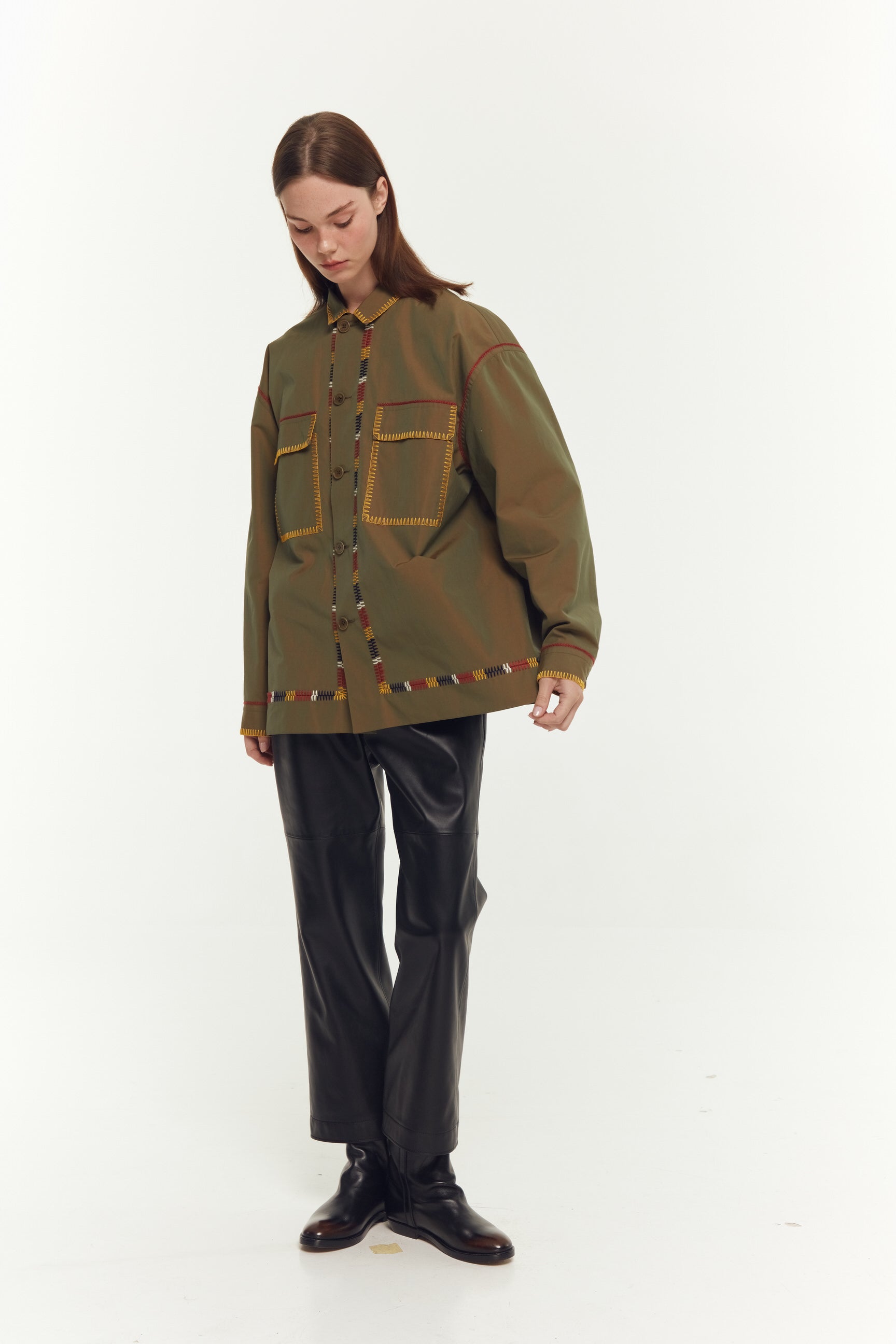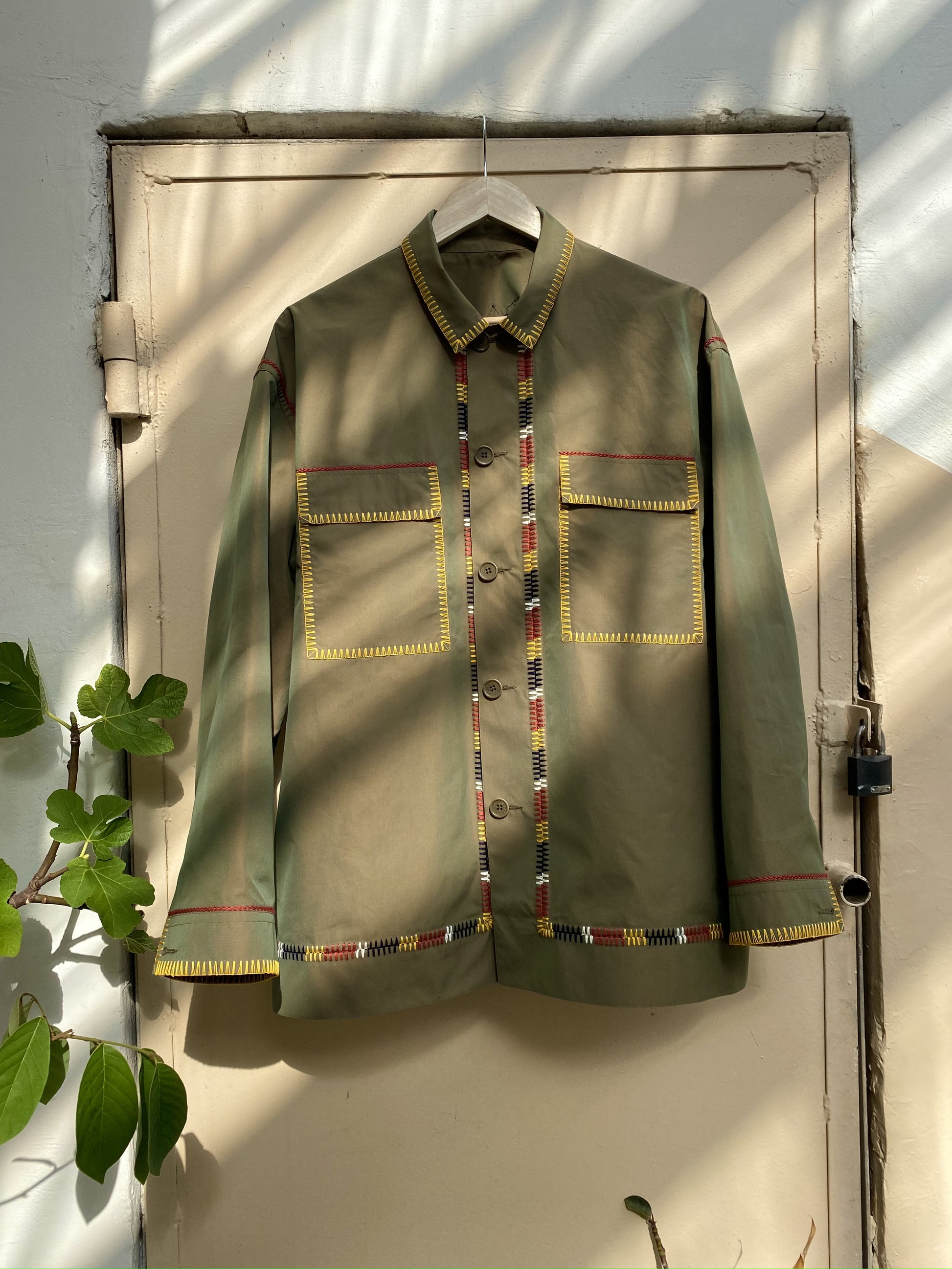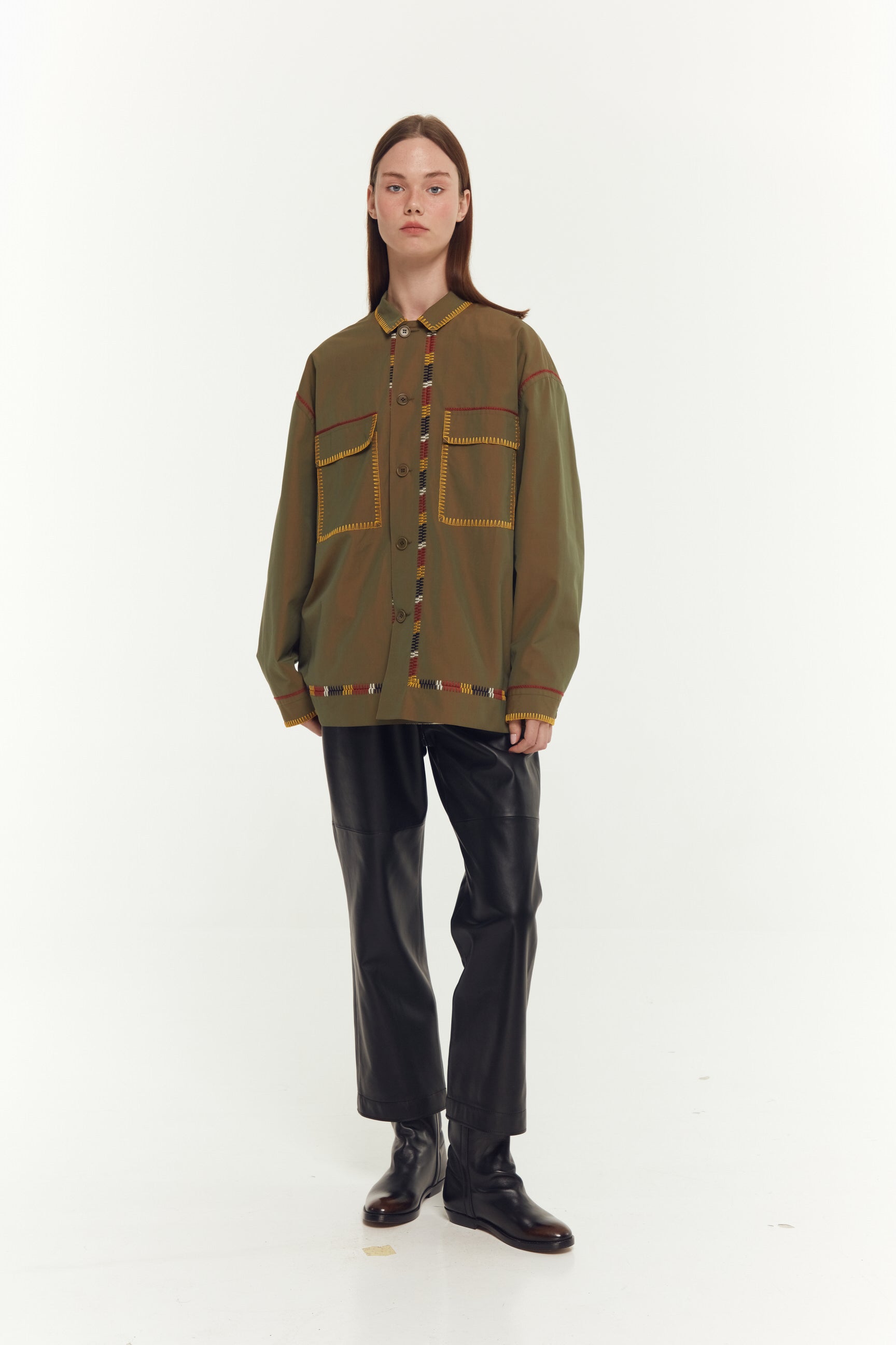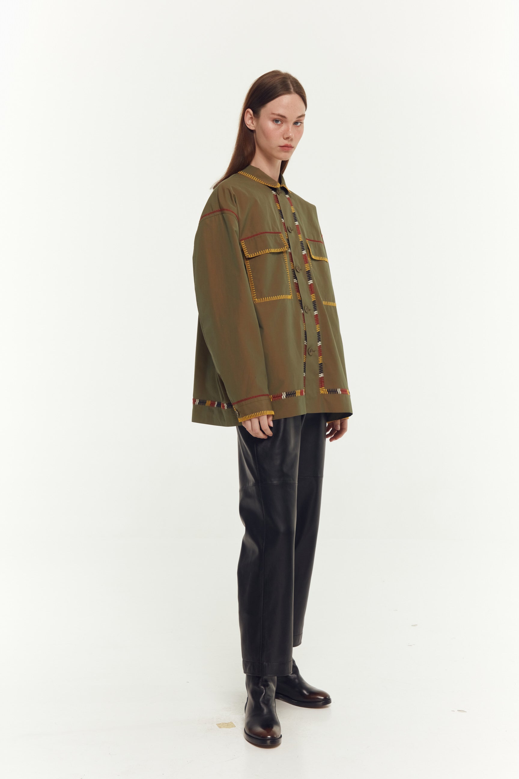 СОРОЧКА В СТИЛІ МІЛІТАРІ З ЕЛЕМЕНТАМИ УКРАЇНСЬКОЇ НАРОДНОЇ ВИШИВКИ. КОЖНА ДЕТАЛЬ ЦІЄЇ СОРОЧКИ ВРУЧНУ ЗІБРАНА З'ЄДНУВАЛЬНИМ ШВОМ, НАДАЮЧИ ЇЙ ОСОБЛИВИЙ ХАРАКТЕР.
