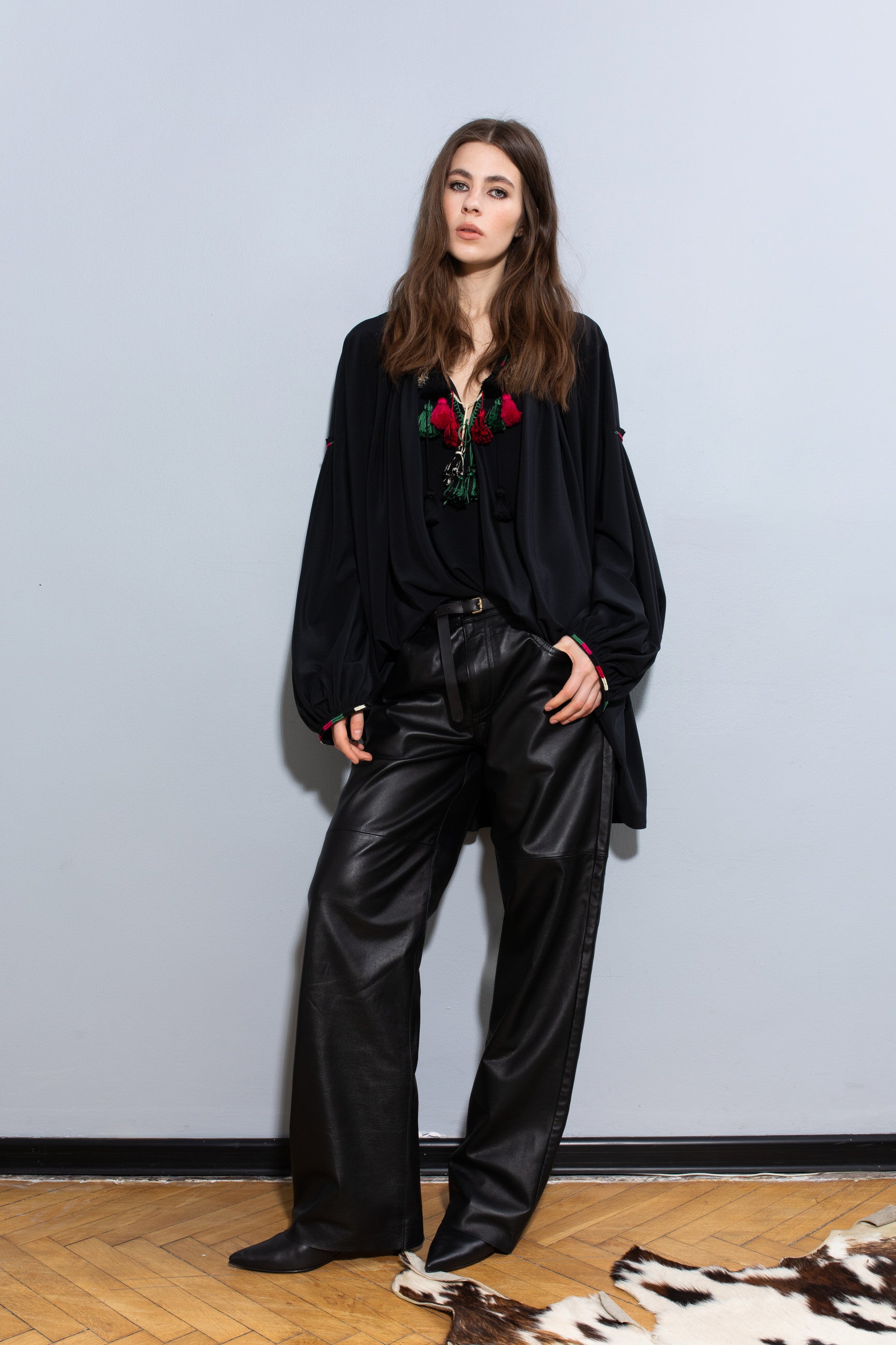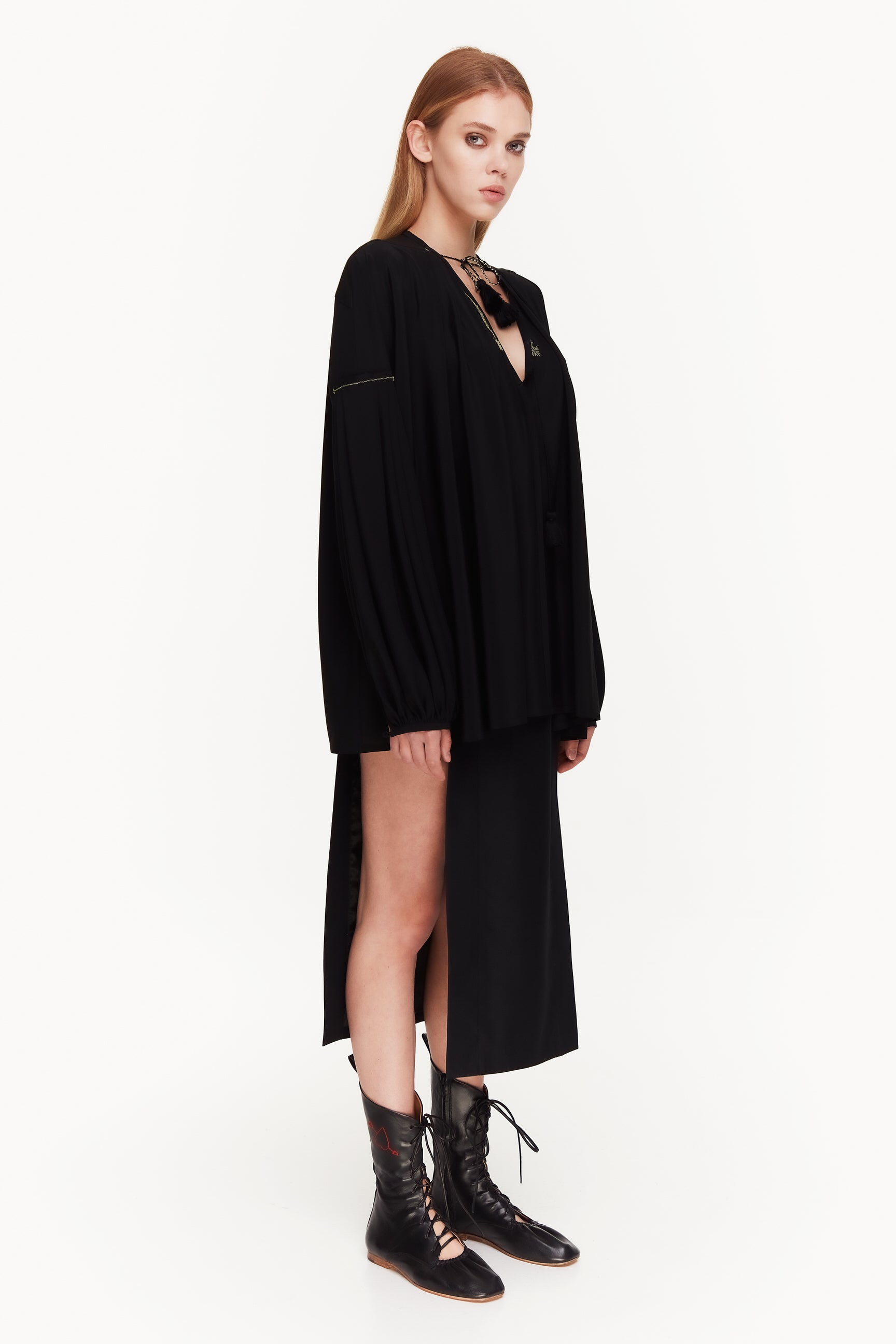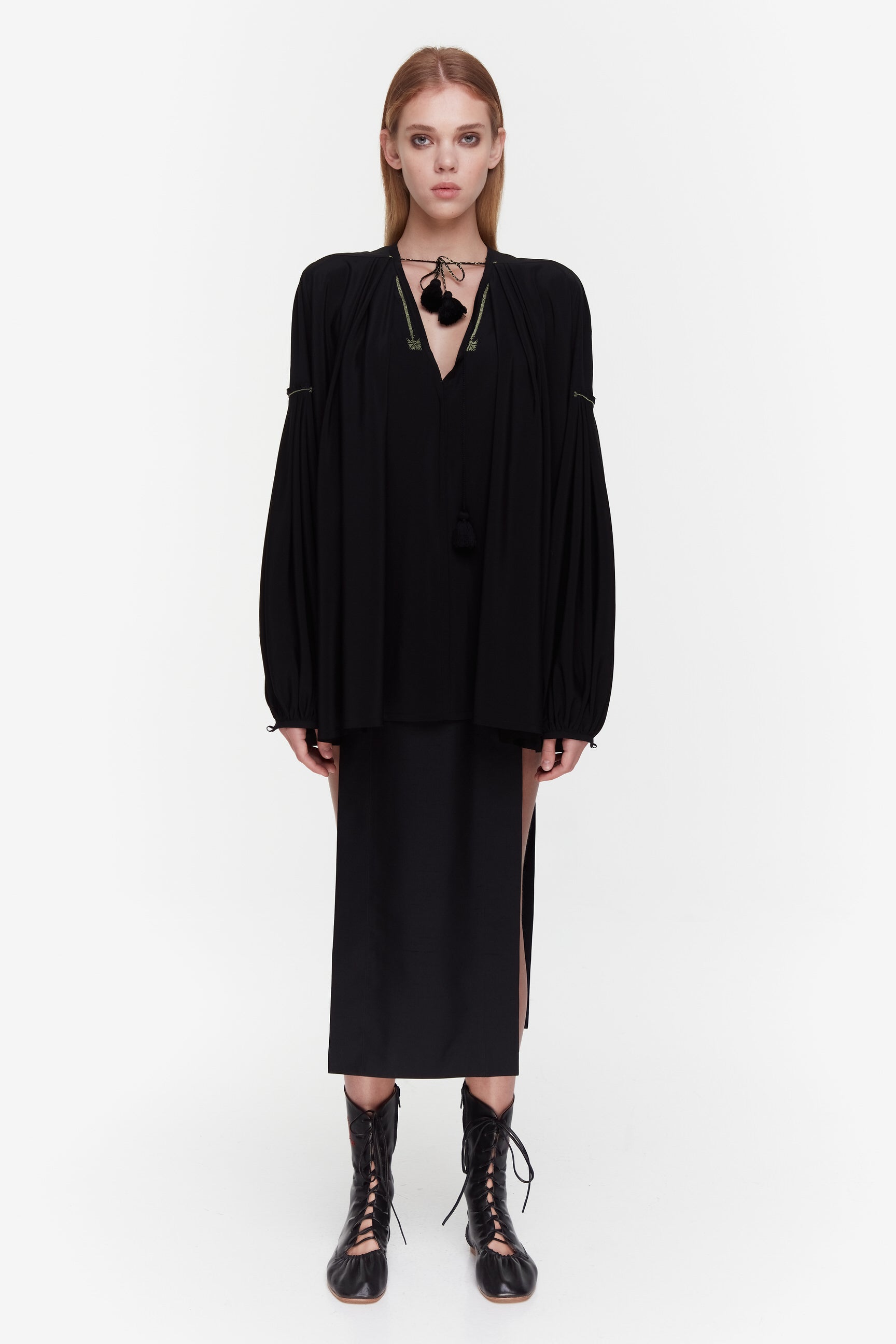 ЛЕГКА СОРОЧКА, ОБ’ЄМНОГО КРОЮ. ПРИКРАШЕНА КУТАСИКАМИ В ТОН СОРОЧКИ