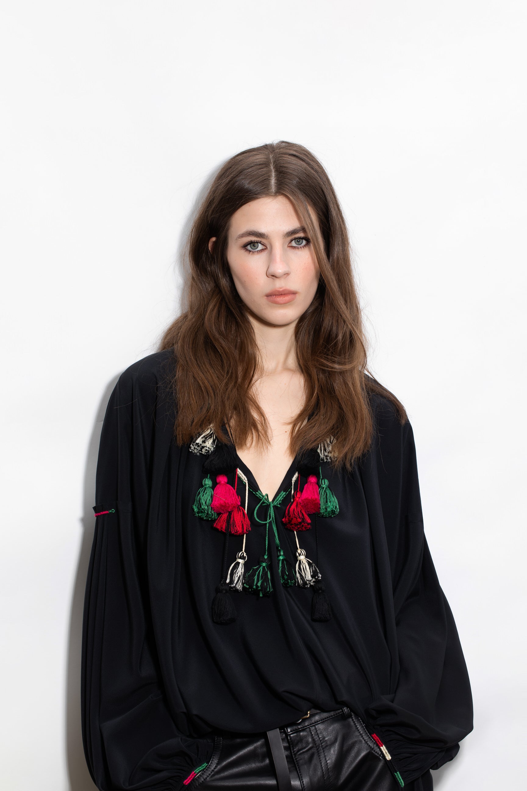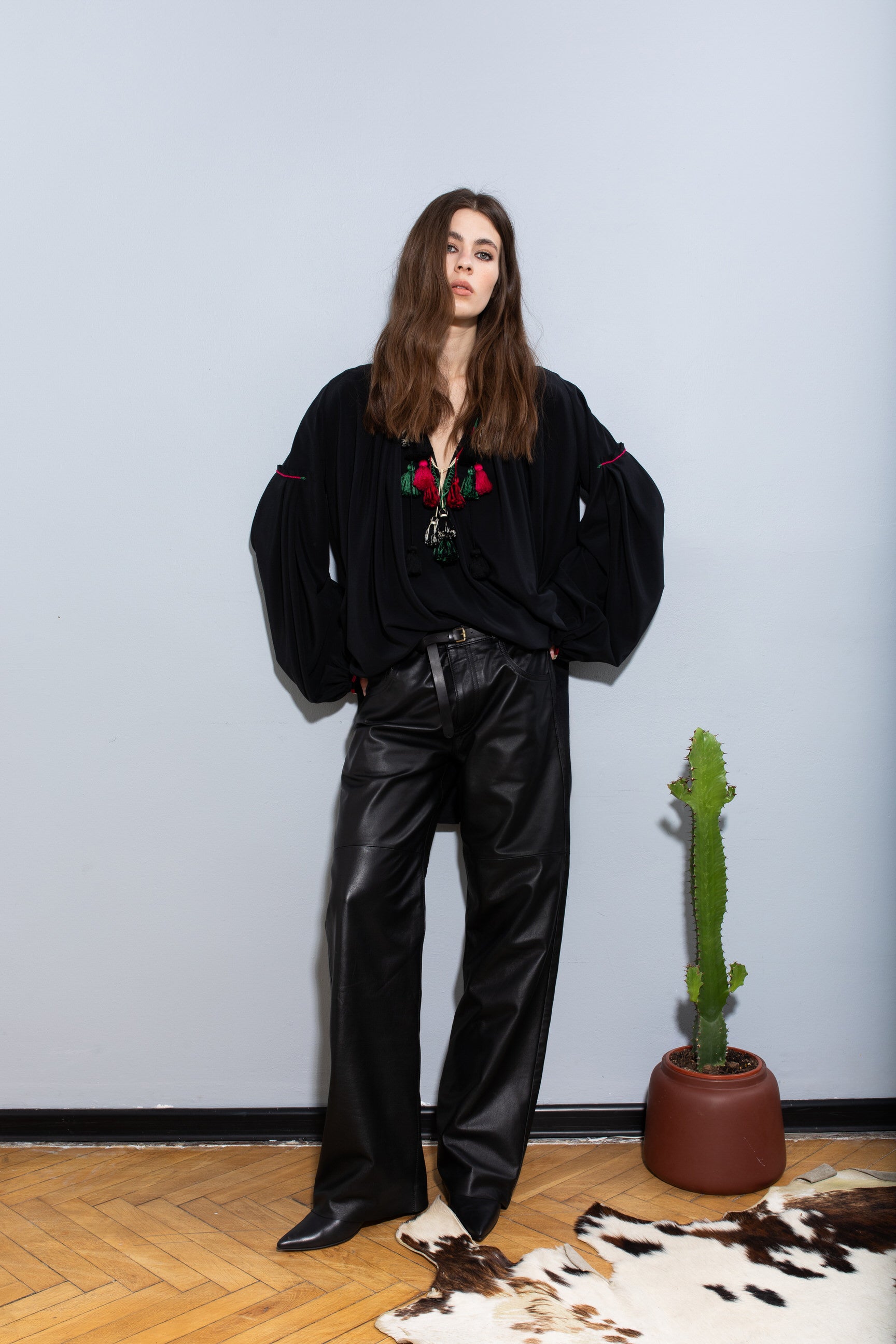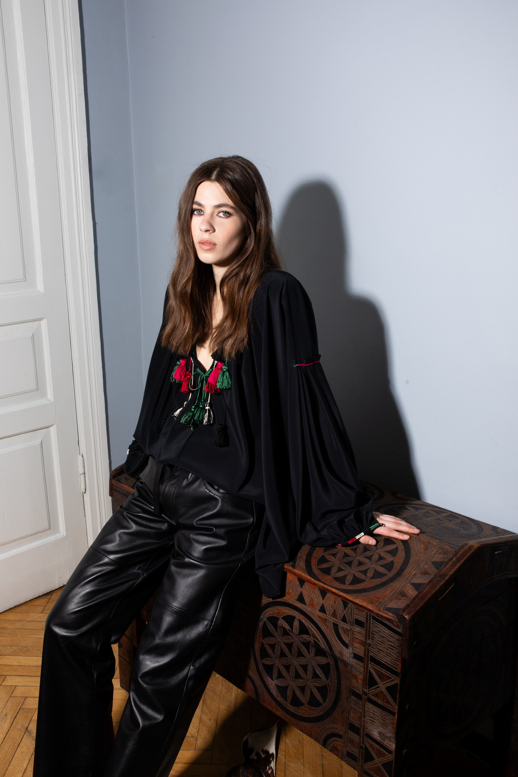 ЛЕГКА СОРОЧКА, ОБ’ЄМНОГО КРОЮ. ПРИКРАШЕНА КУТАСИКАМИ В ТОН СОРОЧКИ