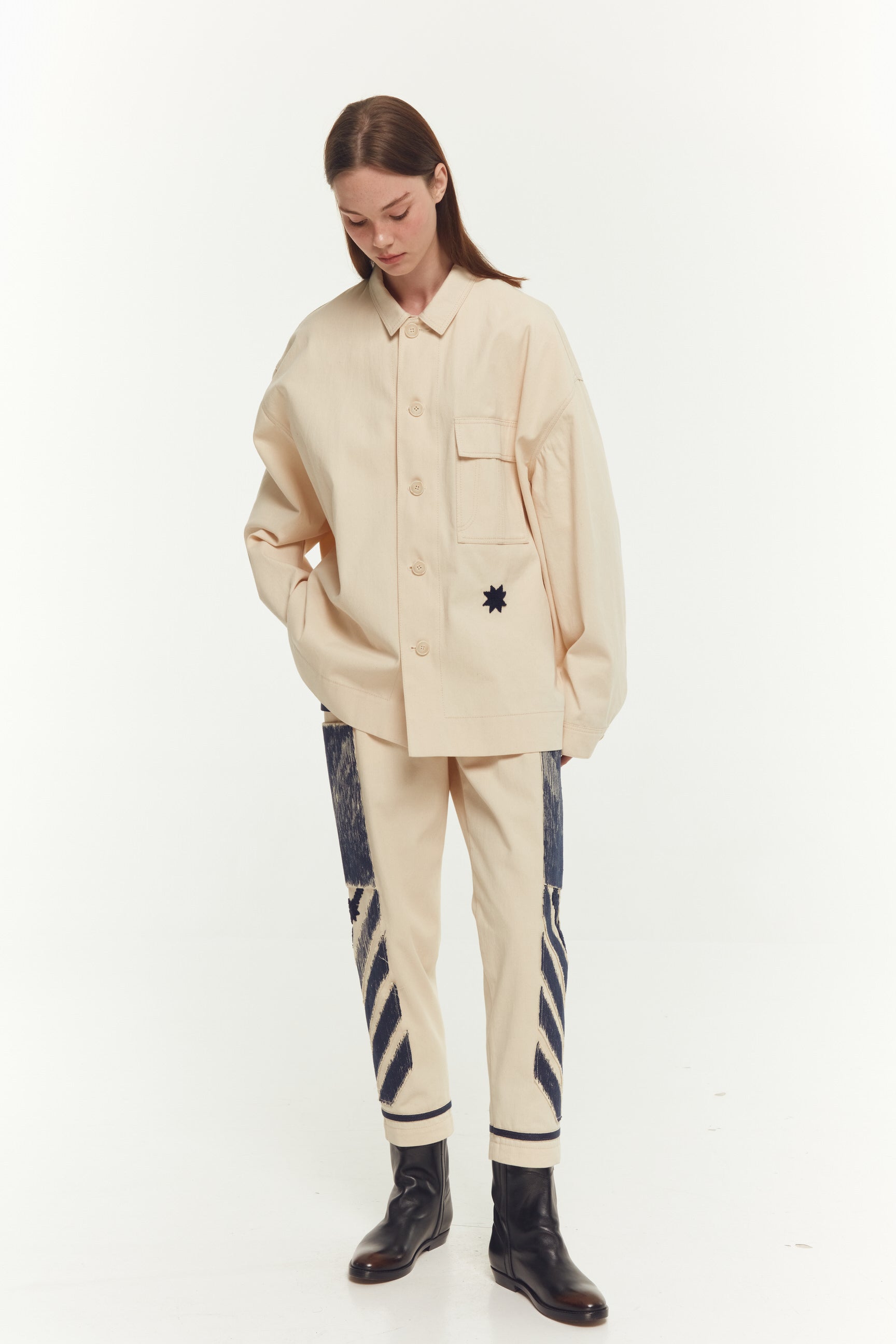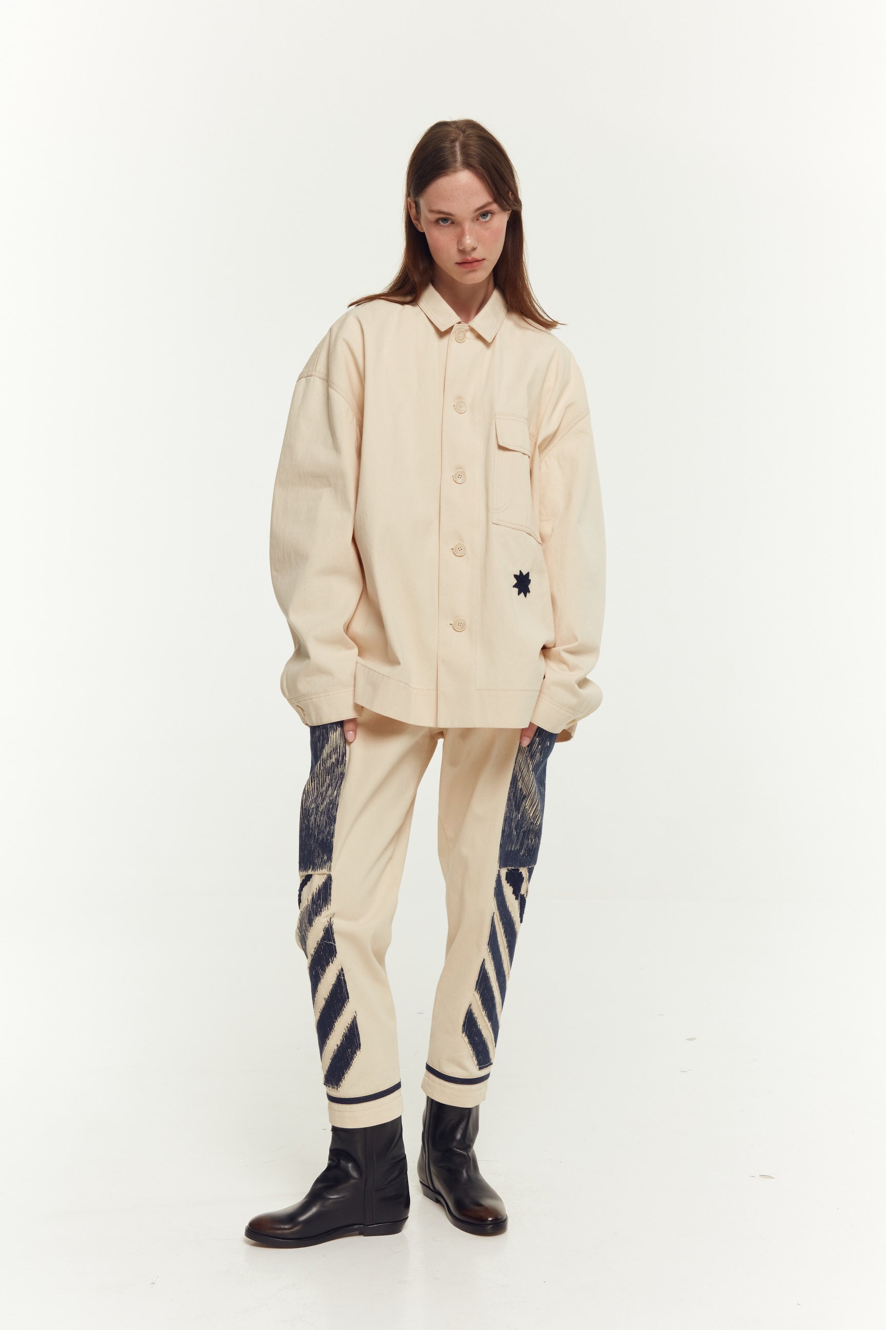 КОТОНОВА КУРТКА-СОРОЧКА. ТКАНИНА І КРІЙ НАГАДУЮТЬ ВІНТАЖНУ ДЖИНСОВУ КУРТКУ 50-Х РОКІВ.