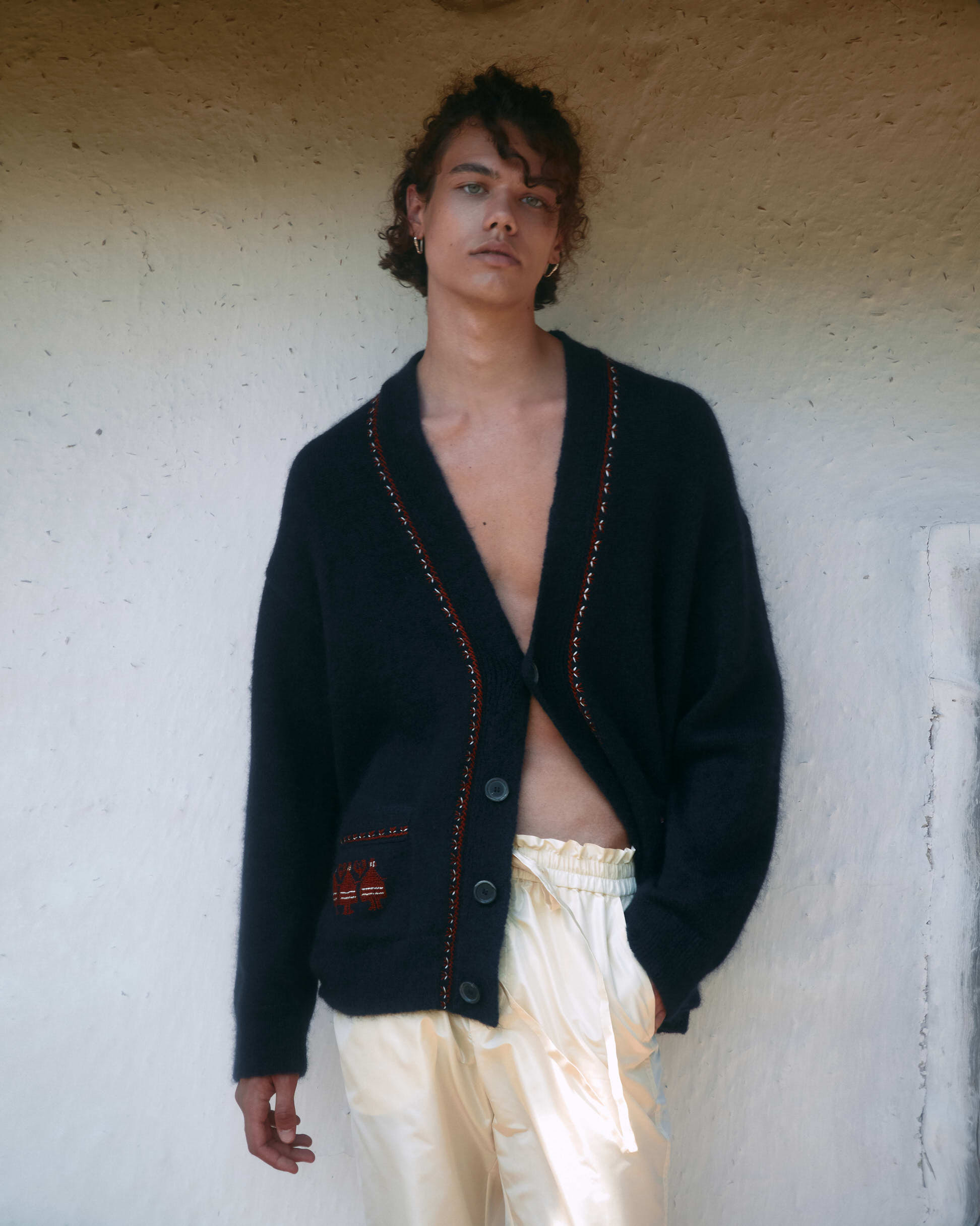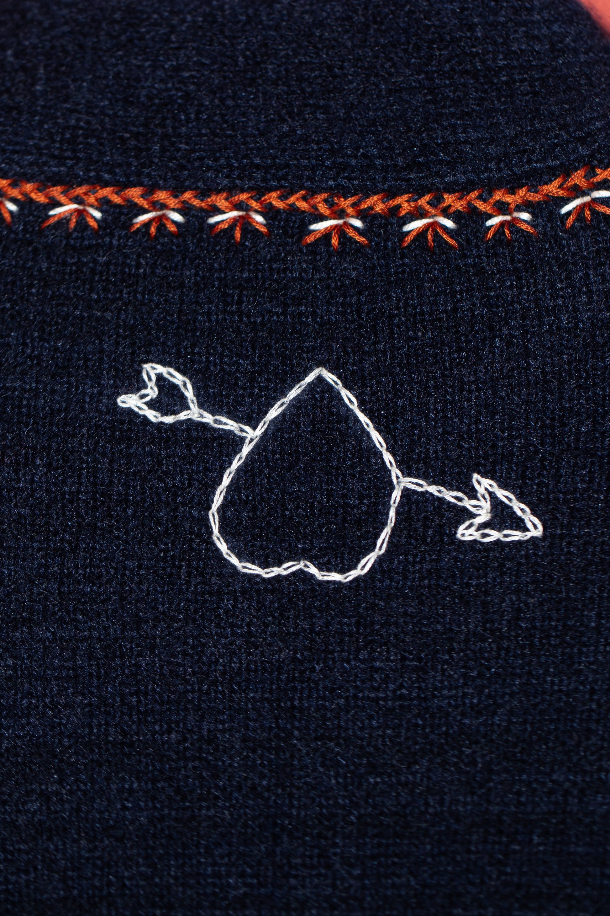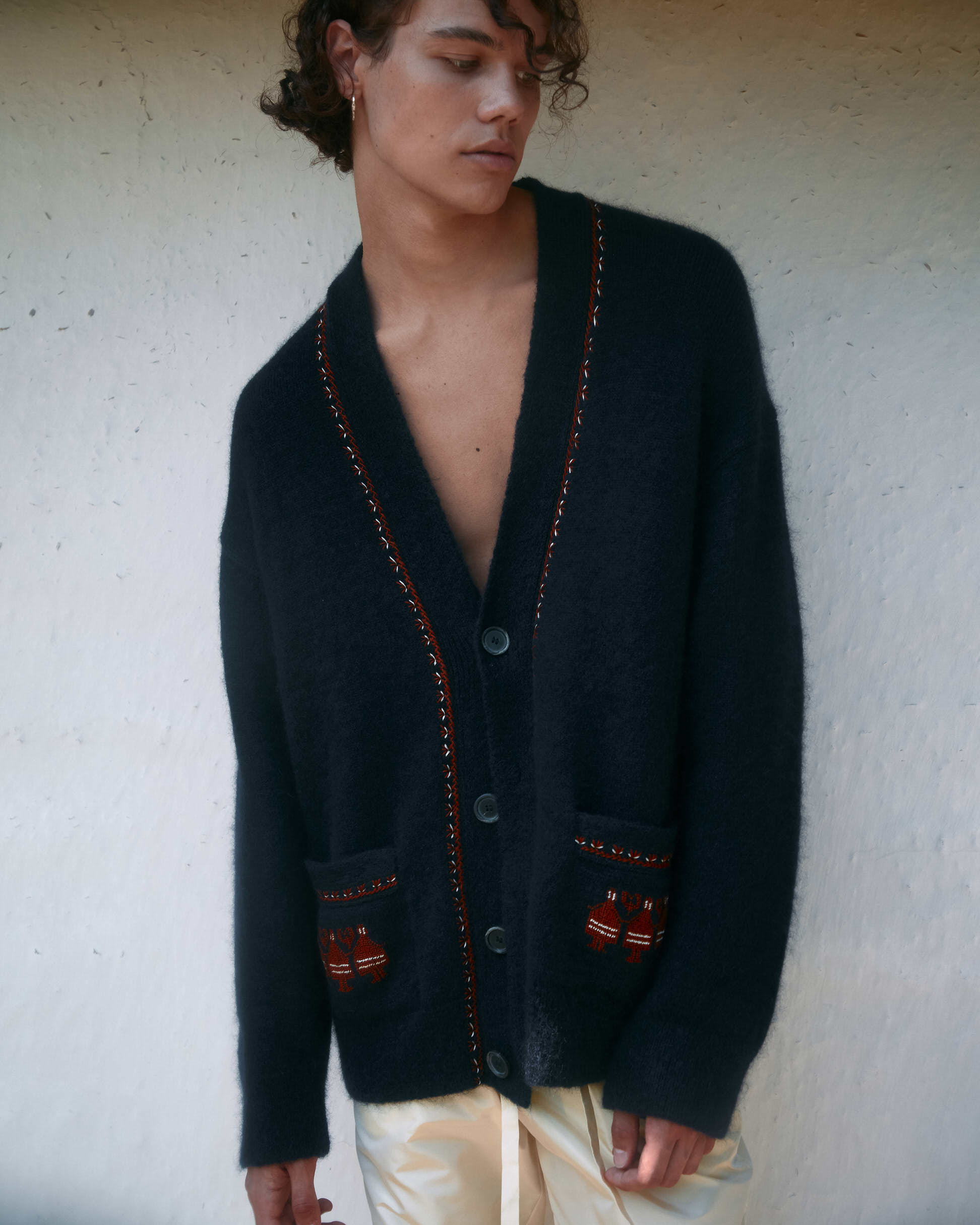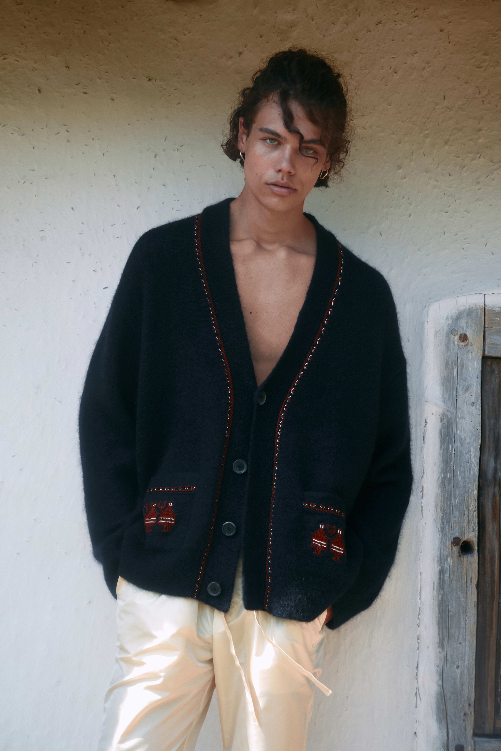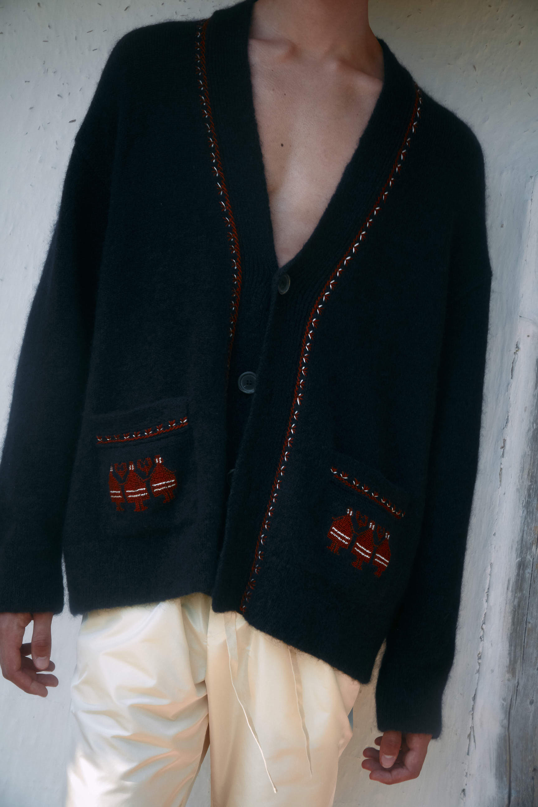 ОВЕРСАЙЗ КАРДИГАН ВІЛЬНОГО КРОЮ. НА КАРДИГАНІ ВИКОРИСТАНІ ЕЛЕМЕНТИ ВИШИВКИ З РУКАВІВ ЖІНОЧИХ СОРОЧОК З СЕЛА СОЛОЧИН В ЗАКАРПАТСЬКІЙ ОБЛАСТІ.